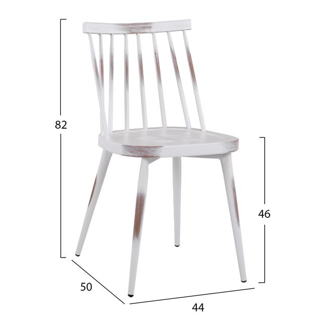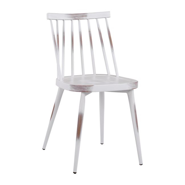 Καρέκλα αλουμινίου σε λευκή πατίνα απόχρωση, κατάλληλη για εξωτερικό χώρο αλλά και εσωτερικό χώρο.