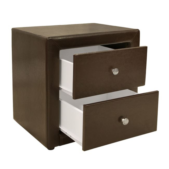 Κομοδίνο επενδυμένο με τεχνόδερμα, σε καφέ χρώμα.