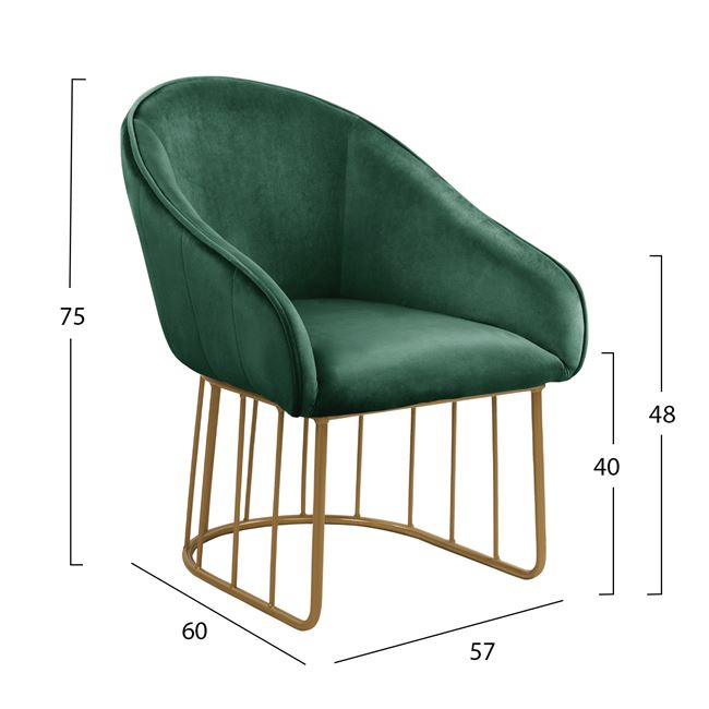 Πολυθρόνα CODY από βελούδο σε κυπαρισσί απόχρωση με μεταλλική βάση σε χρυσή απόχρωση.