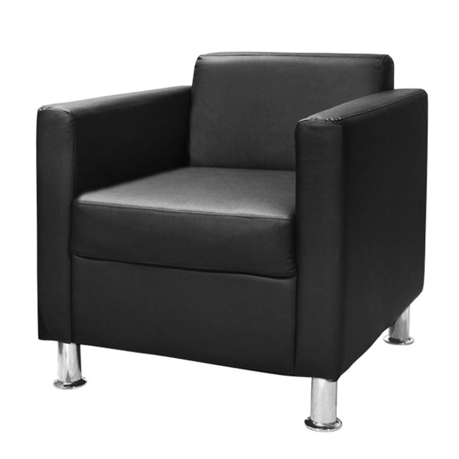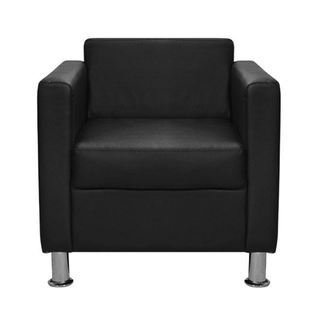 Μοντέρνα πολυθρόνα επενδυμένη με PU υψηλής ποιότητας σε μαύρο χρώμα.