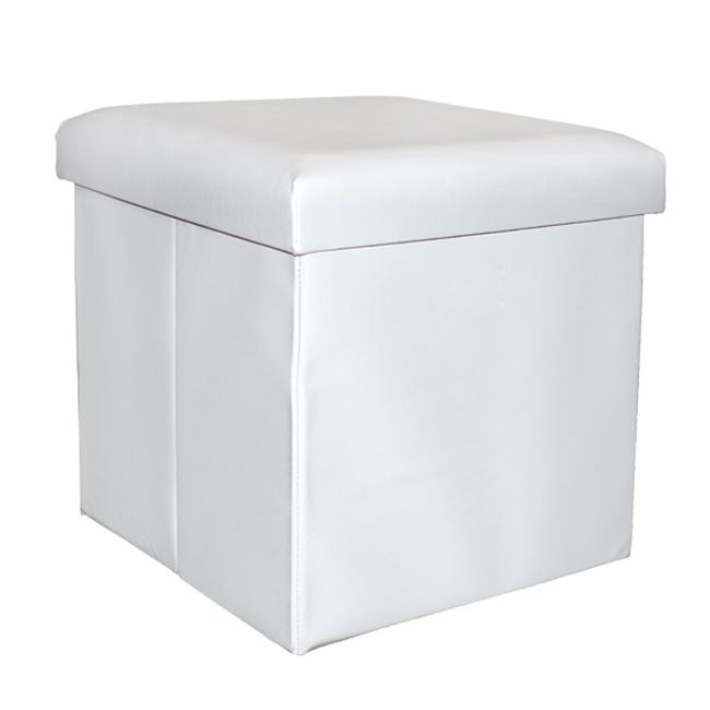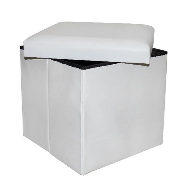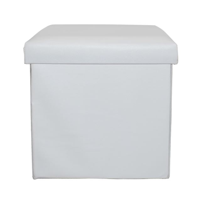 Foldable stool with storage space covered with leatherette in white color.Decorate the space and hide the things you don't want to be seen.