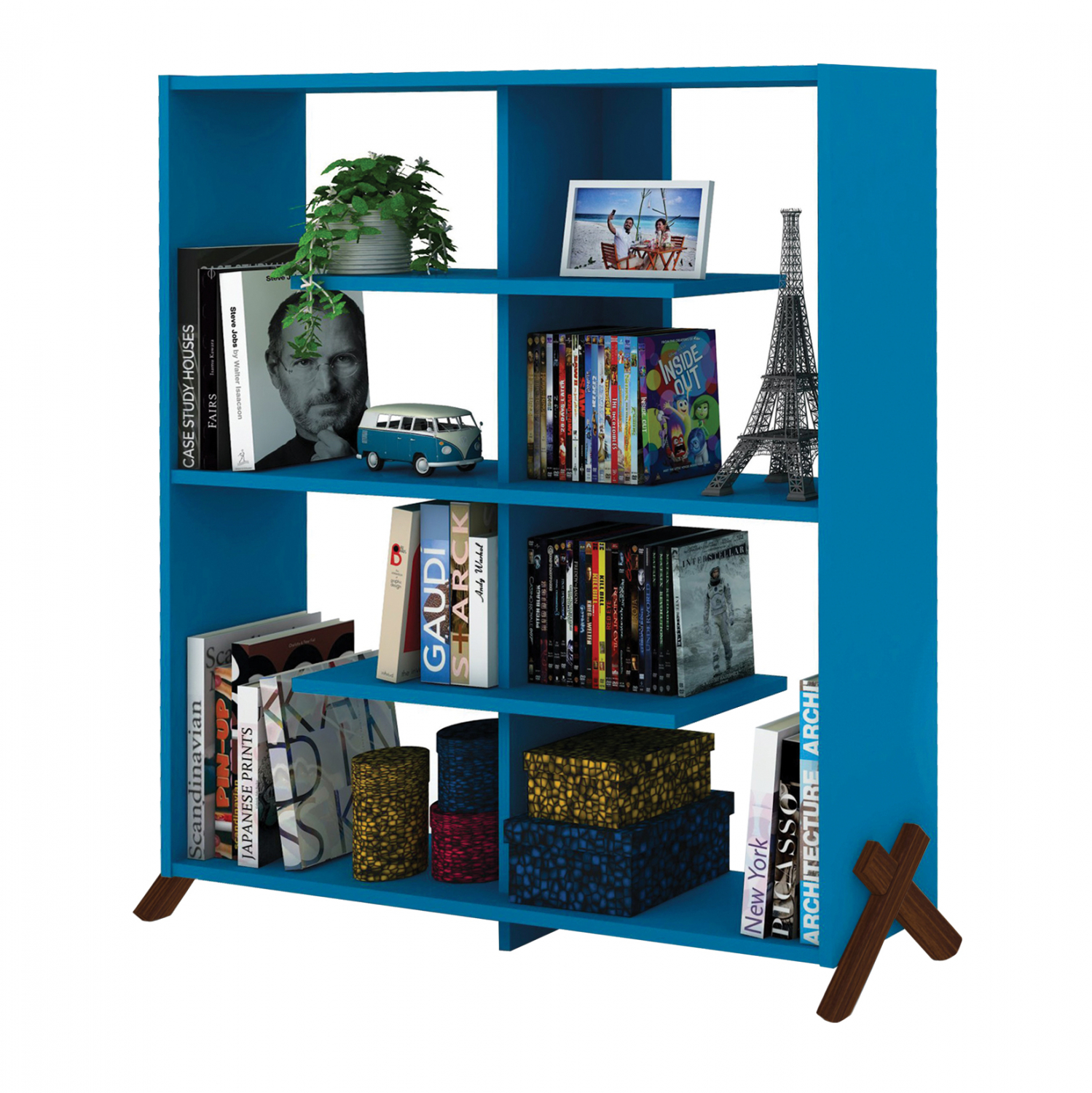 Βιβλιοθήκη Kipp σε μπλε απόχρωση με λεπτομέρειες σε καρυδί χρώμα.