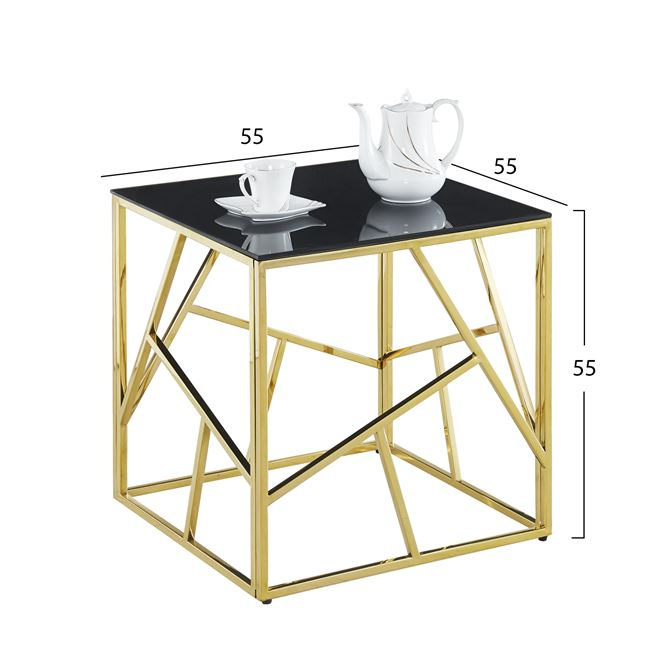 ΒΟΗΘΗΤΙΚΟ ΤΡΑΠΕΖΑΚΙ JANA HM8619.01 ΜΕ ΜΑΥΡΟ ΓΥΑΛΙ ΚΑΙ ΕΠΙΧΡΥΣΗ ΒΑΣΗ 55X55Χ55 EK.
