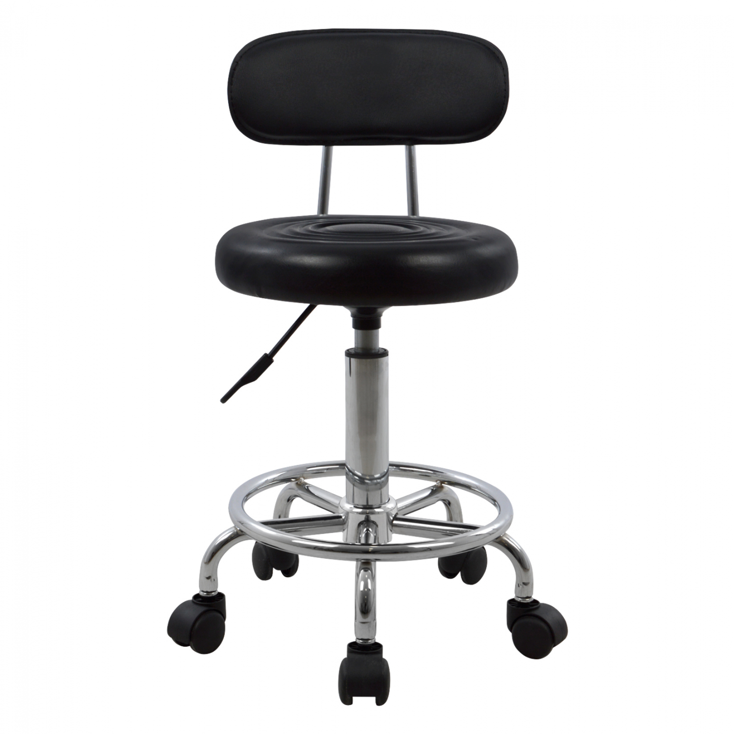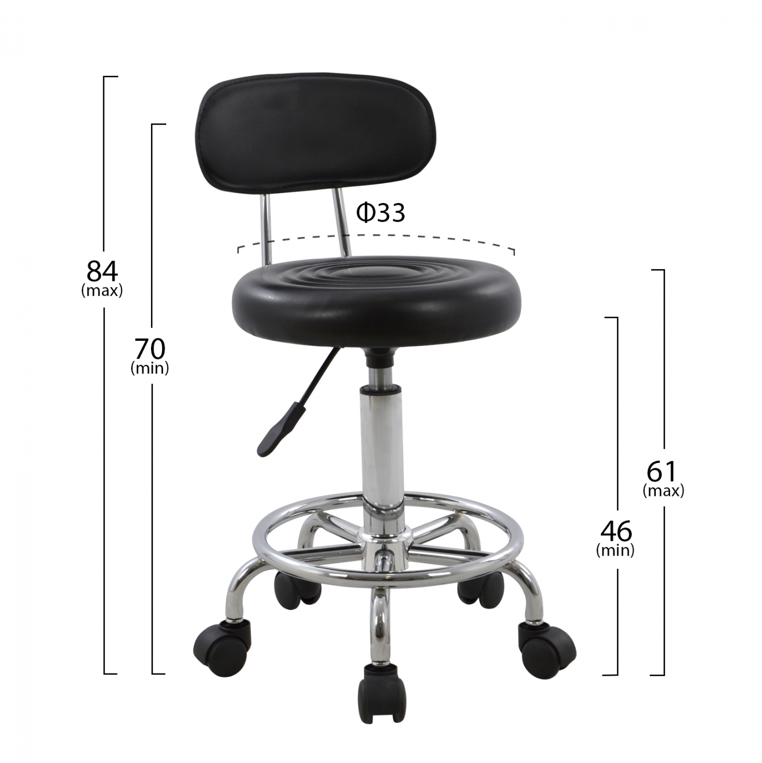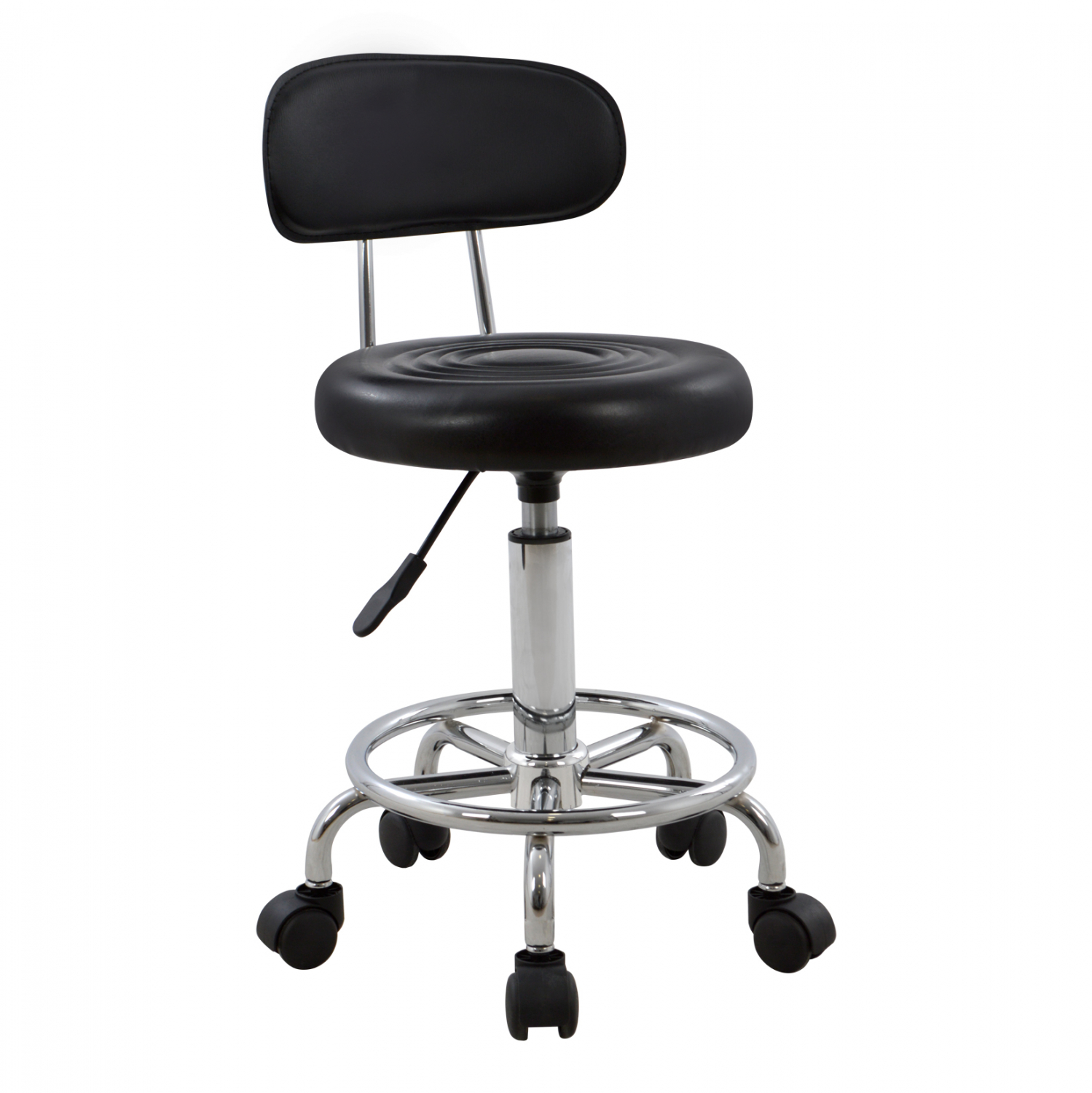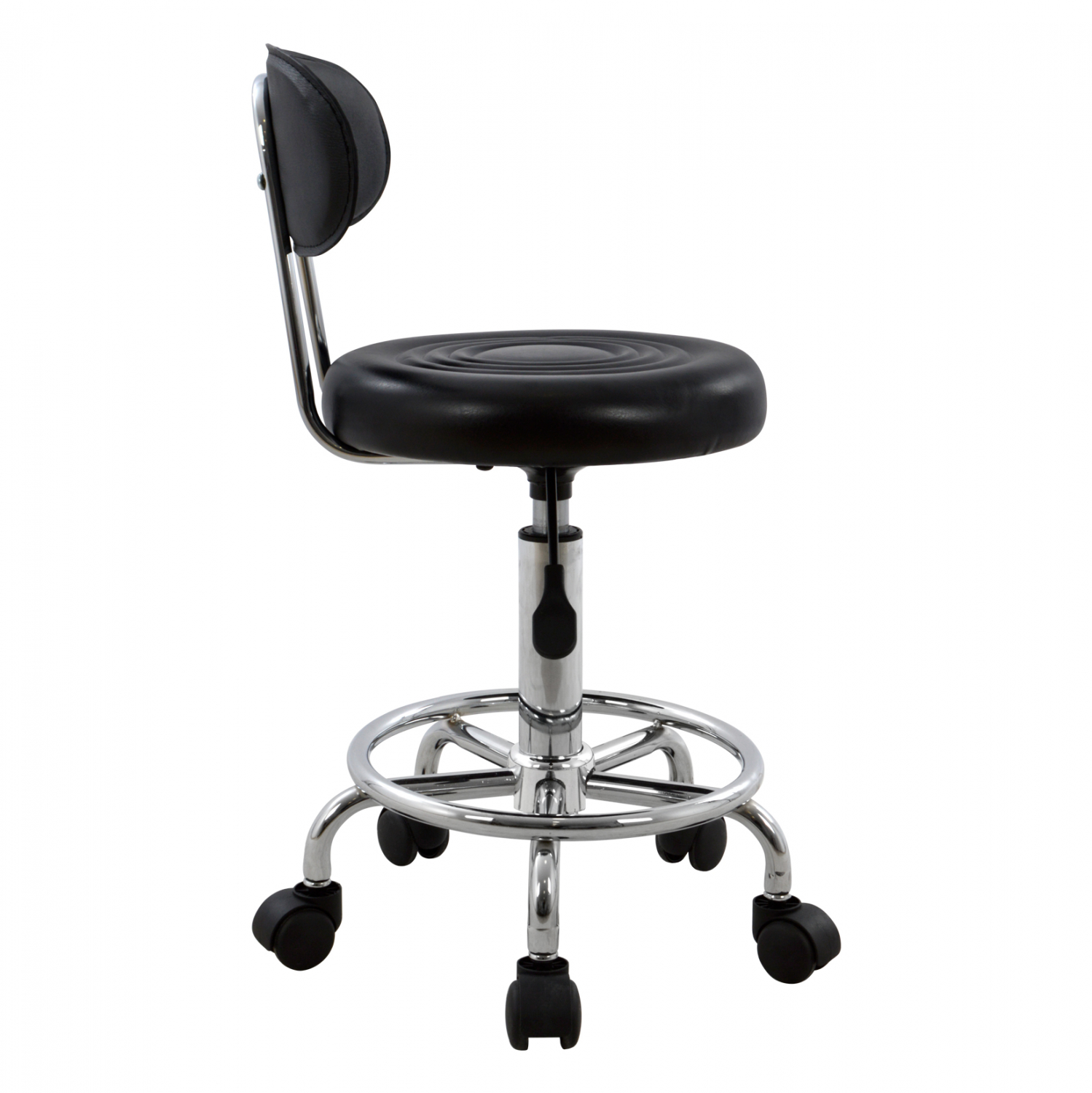 Τροχήλατο κάθισμα σχεδιαστηρίου με πλάτη σε μαύρο PU.