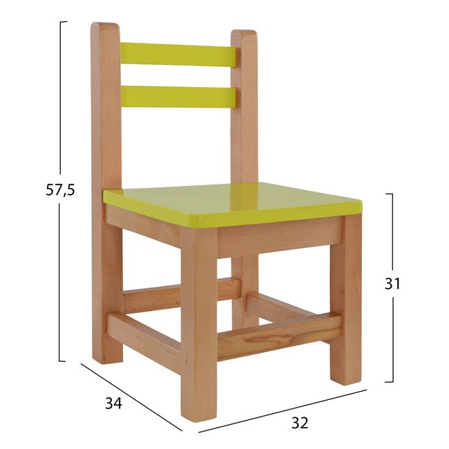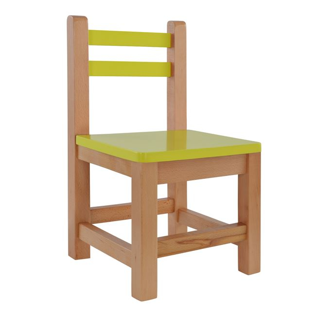 Παιδικό ξύλινο καρεκλάκι σε λαχανί χρώμα, κατάλληλο για κάθε παιδικό δωμάτιο αλλά και για τον εξοπλισμό παιδικών σταθμών & νηπιαγωγείων.