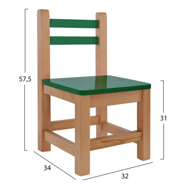 Παιδικό ξύλινο καρεκλάκι σε πράσινο χρώμα, κατάλληλο για κάθε παιδικό δωμάτιο αλλά και για τον εξοπλισμό παιδικών σταθμών & νηπιαγωγείων.