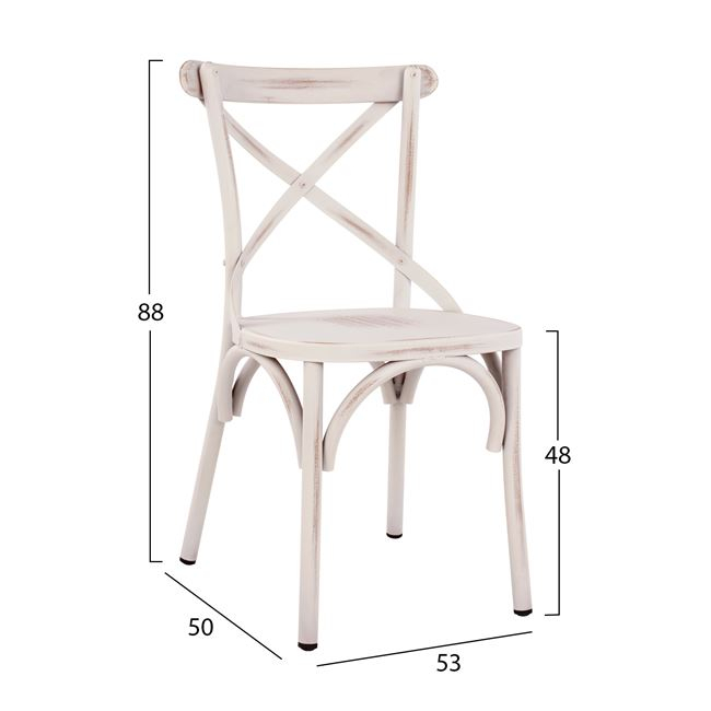 Καρέκλα αλουμινίου Forenza με χιαστή πλάτη σε απόχρωση λευκή πατίνα