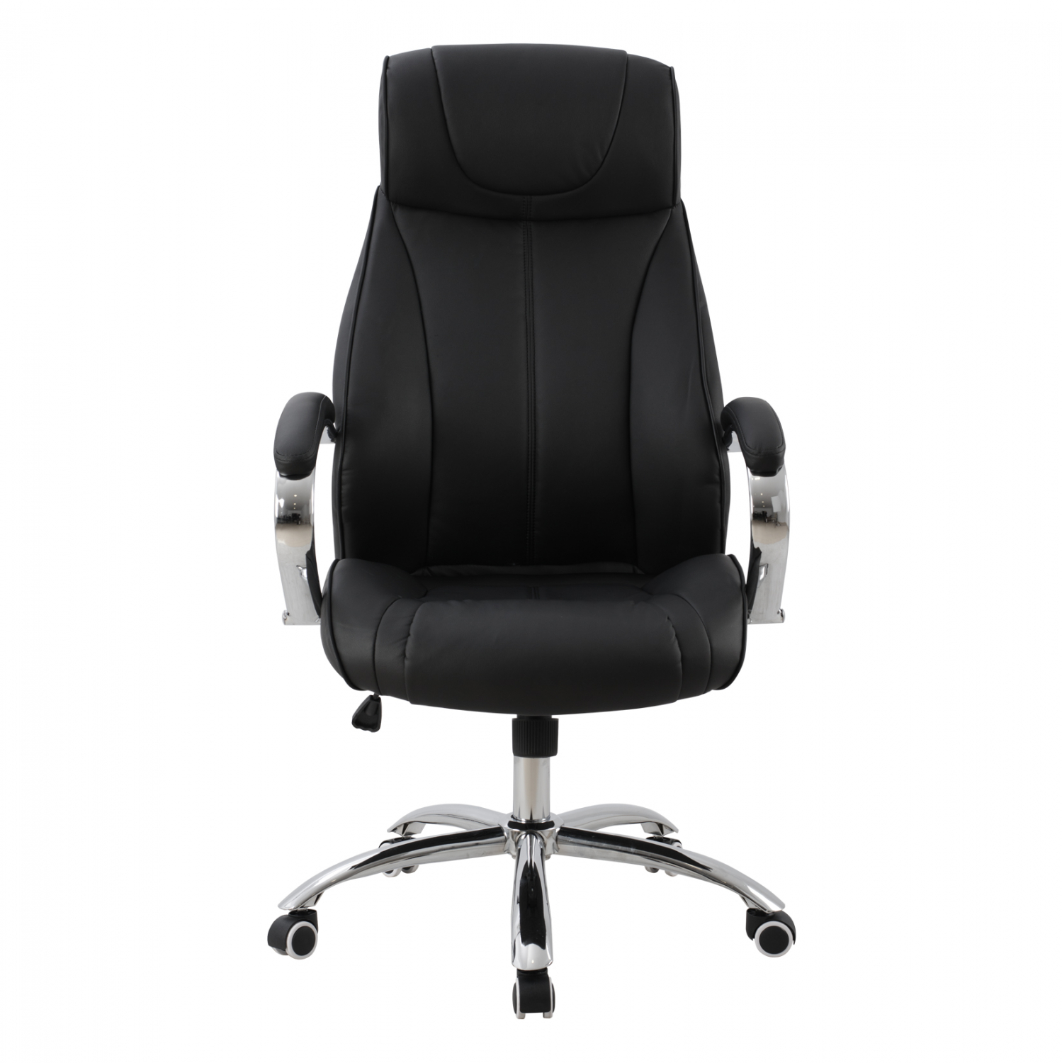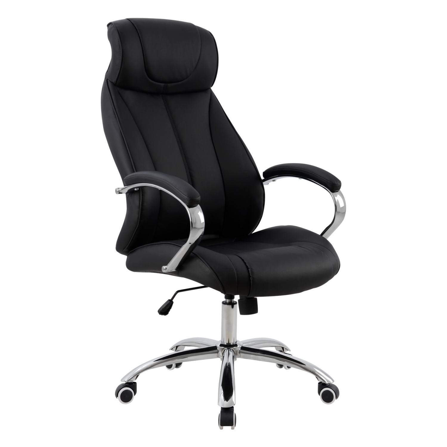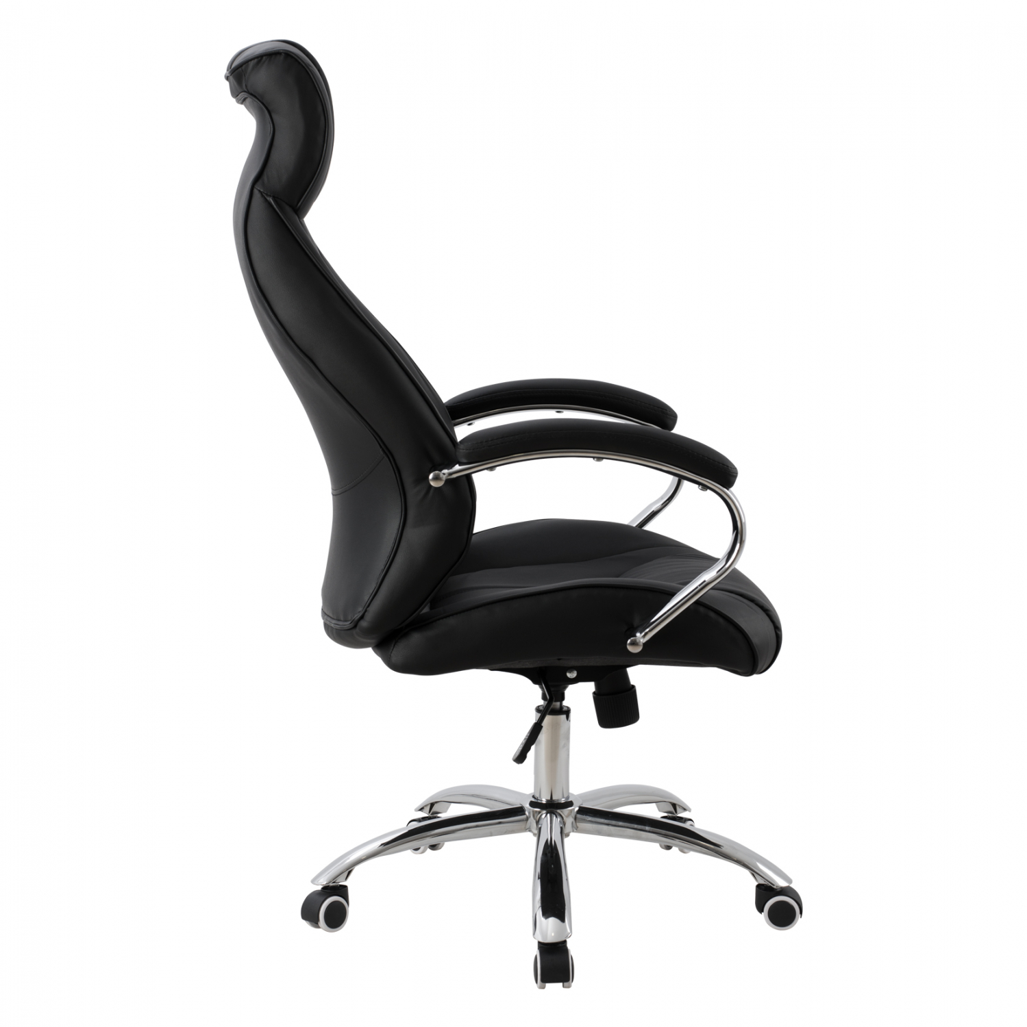 Καρέκλα γραφείου διευθυντική με μπράτσα και ανάκλιση από υψηλής ποιότητας PU σε μαύρο χρώμα και μοναδικό design.