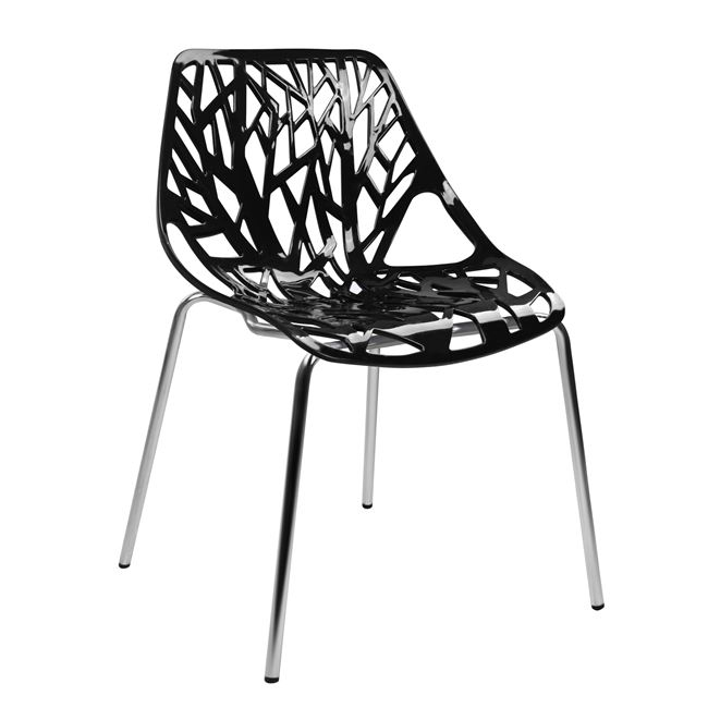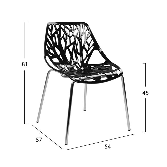 Καρέκλα μοντέρνου design, από πολυπροπιλένιο σε μαύρο χρώμα και σκελετό χρωμίου.