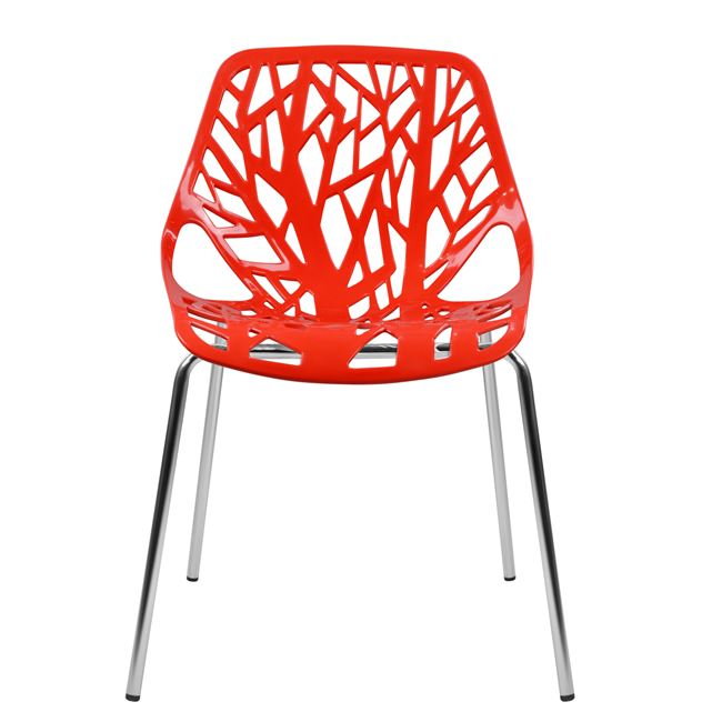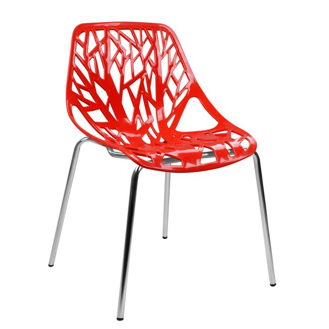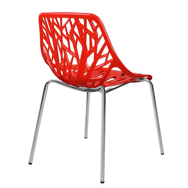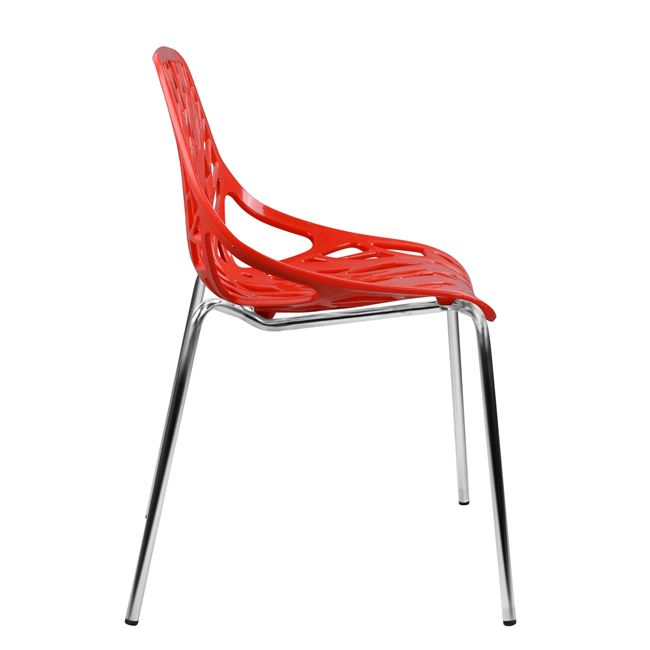 Καρέκλα μοντέρνου design, από πολυπροπιλένιο σε κόκκινο χρώμα και σκελετό χρωμίου.