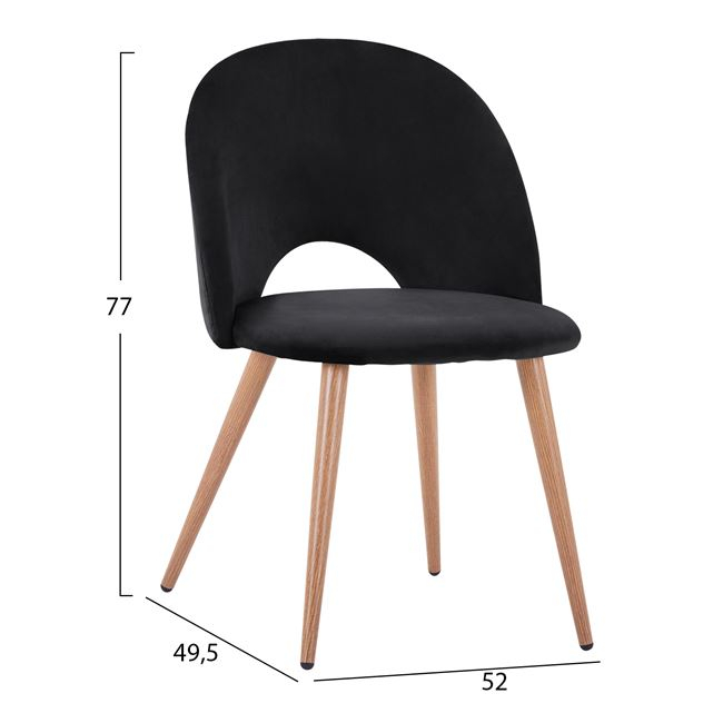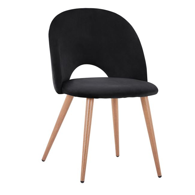Καρέκλαι SADIE επενδυμένη με βελούδο σε μαύρη απόχρωση. Τα πόδια είναι μεταλλικά, βαμμένα έτσι ώστε να αποδίδουν την όψη του ξύλου.