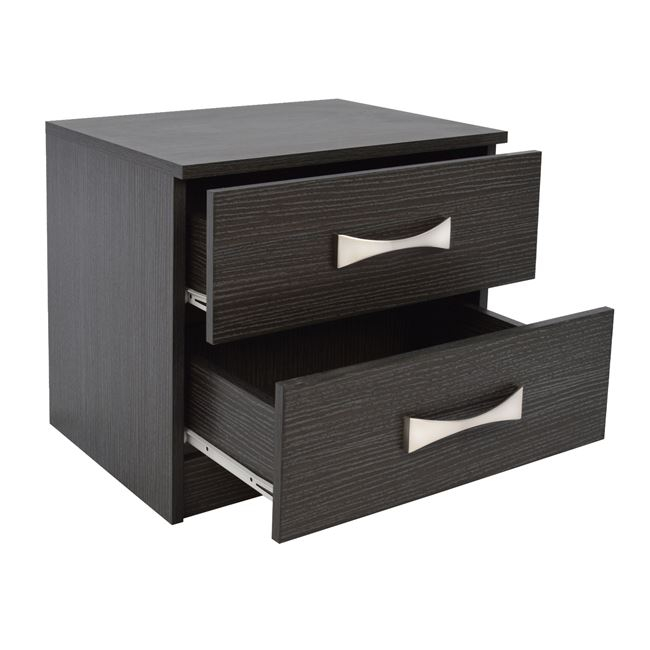 Το κομοδίνο έχει 2 συρτάρια αποθήκευσης τα οποία ανοίγουν με πόμολα χρωμίου.