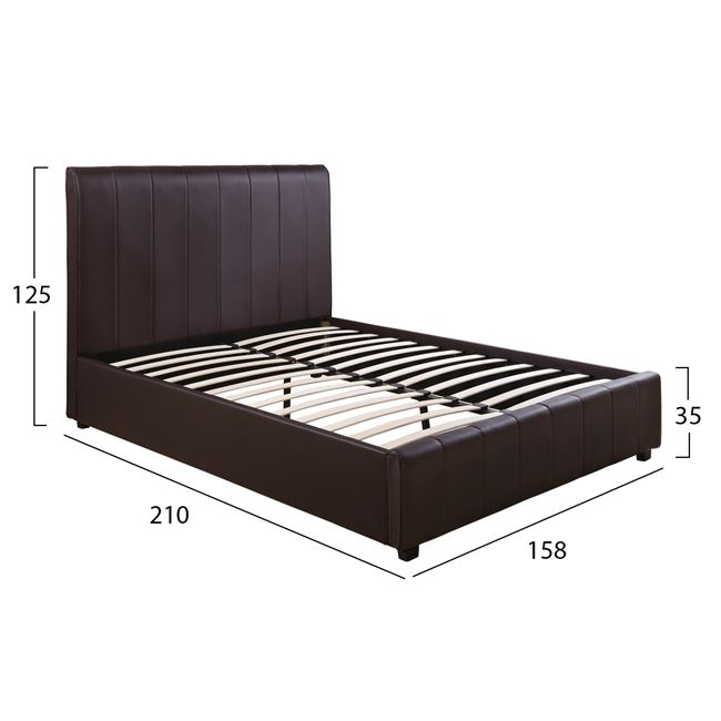Το κρεβάτι Beccy, είναι επενδεδυμένο από τεχνόδερμα υψηλής ποιότητας σε καφέ απόχρωση.