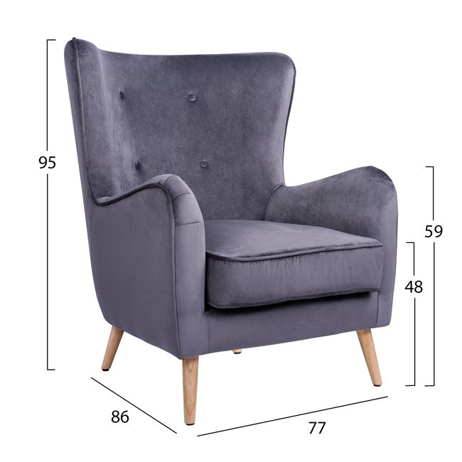 Μπερζέρα πολυθρόνα MARTA σε γκρι απόχρωση.