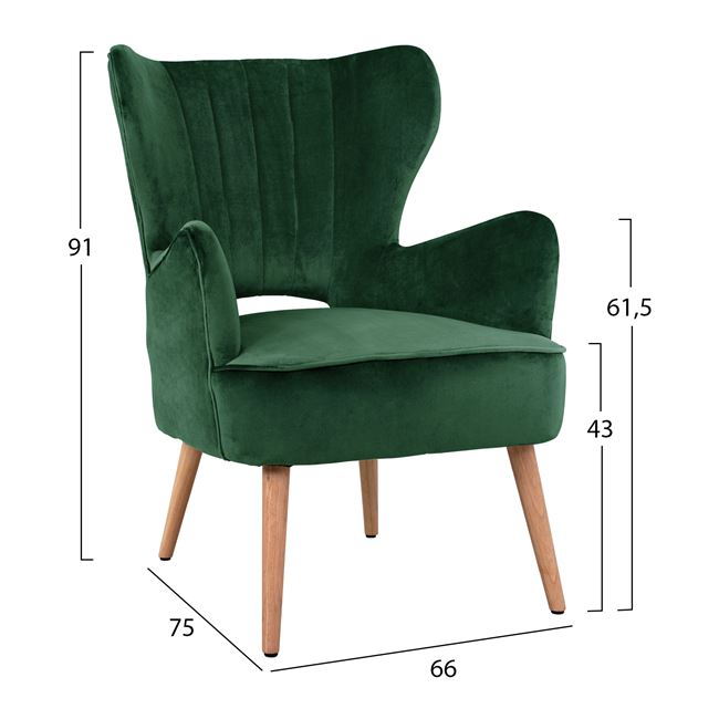 Μπερζέρα πολυθρόνα MYLIE από βελούδο σε κυπαρισσί απόχρωση.