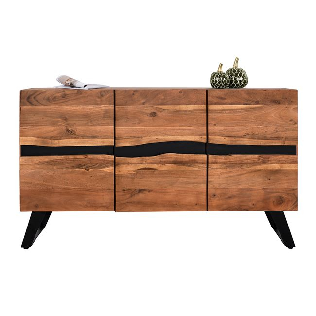 Μπουφές από μασίφ ξύλο Ακακίας σε φυσική απόχρωση και μεταλλικά πόδια σε μαύρο χρώμα.