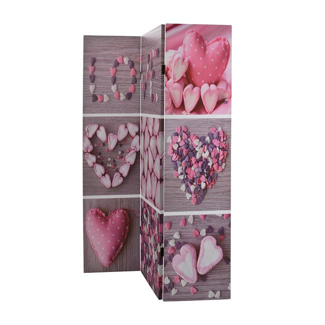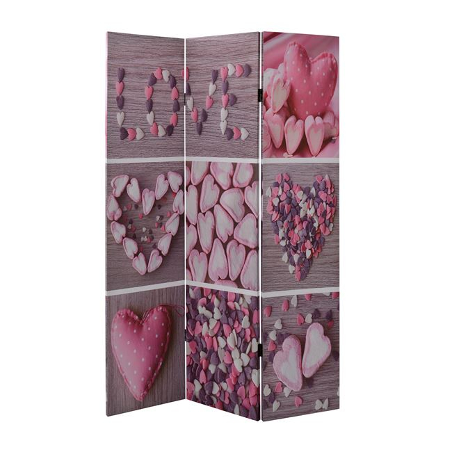 Διακοσμητικό παραβάν διπλής όψης από τυπωμένο καμβά, με τρία φύλλα σε σχέδιο Love.