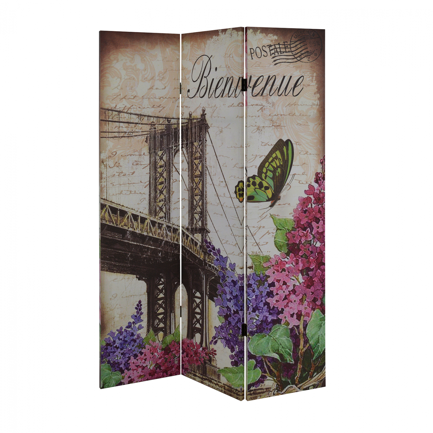 Διακοσμητικό παραβάν διπλής όψης από τυπωμένο καμβά, με τρία φύλλα σε σχέδιο Bridge.