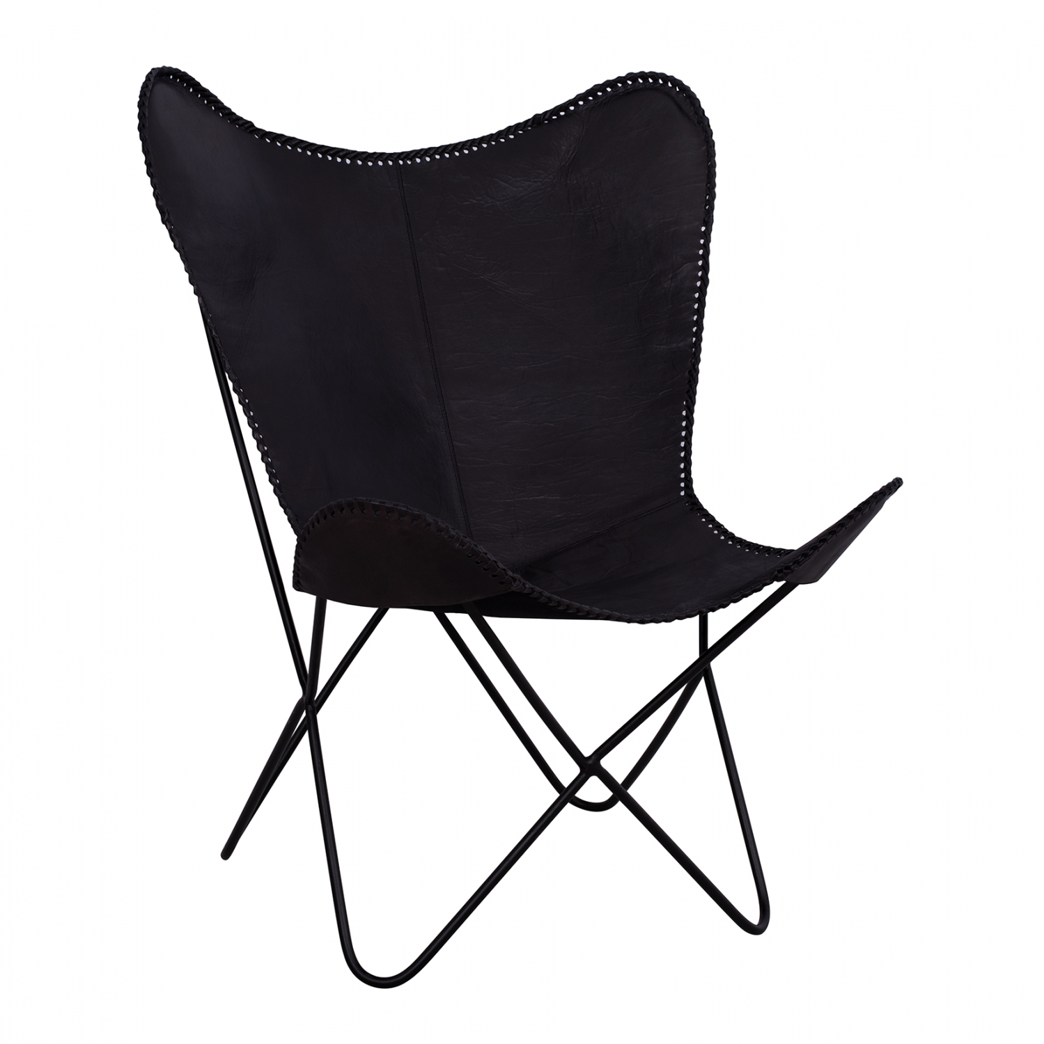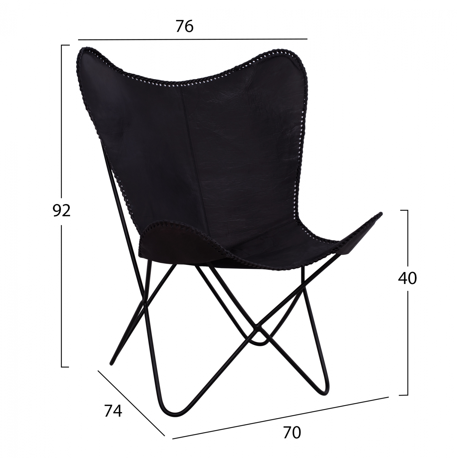 Μοντέρνα πολυθρόνα από μαύρο μεταλλικό σκελετό και γνήσιο δέρμα παλαιωμένο σε μαύρη απόχρωση.