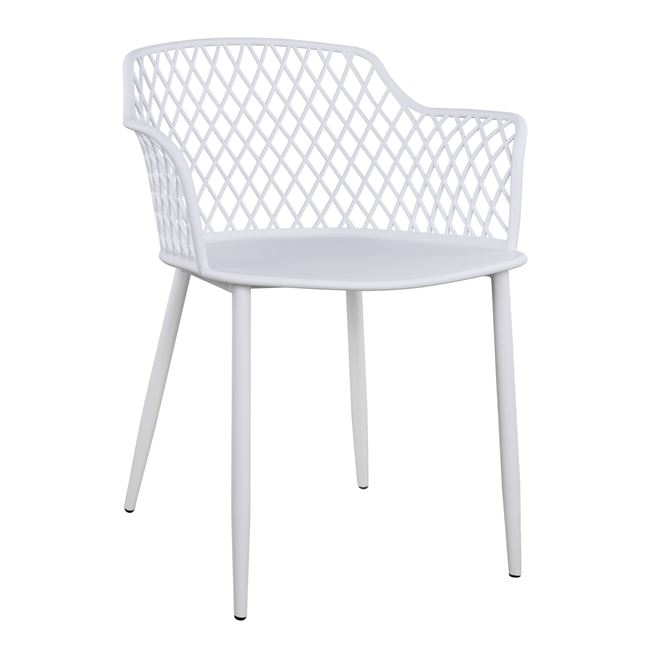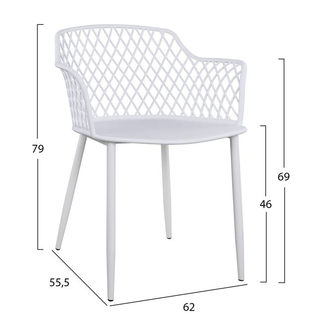 Η κατασκευή της πολυθρόνας JOCELYN είναι από πολυπροπιλένιο και μέταλλο σε λευκή απόχρωση.