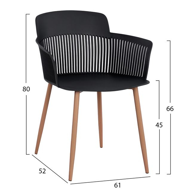 Η κατασκευή της πολυθρόνας NENA είναι από πολυπροπιλένιο και μέταλλο σε μαύρη απόχρωση.