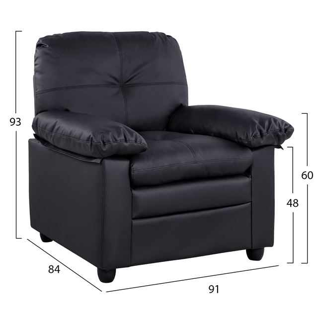 Η πολυθρόνα HECTOR είναι κατασκευασμένη από ξύλινο σκελετό και επενδεδυμένη από τεχνόδερμα σε μαύρη απόχρωση.