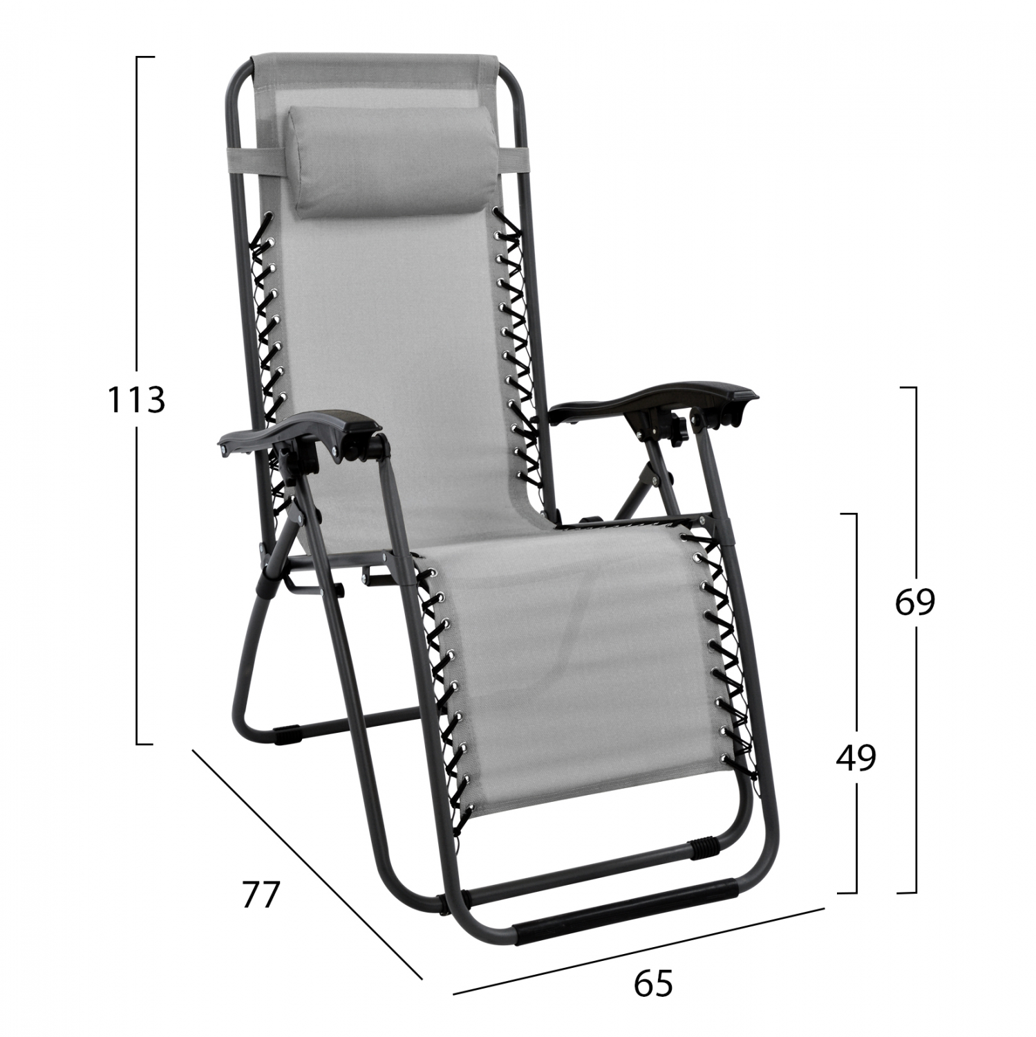 Πολυθρόνα πτυσσόμενη από μεταλλικό σκελετό και ενισχυμένη επένδυση textline σε γκρι απόχρωση.
