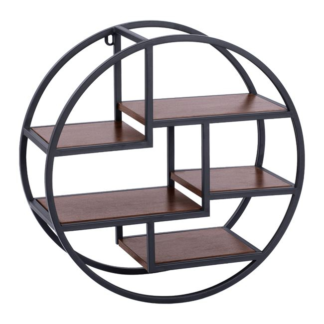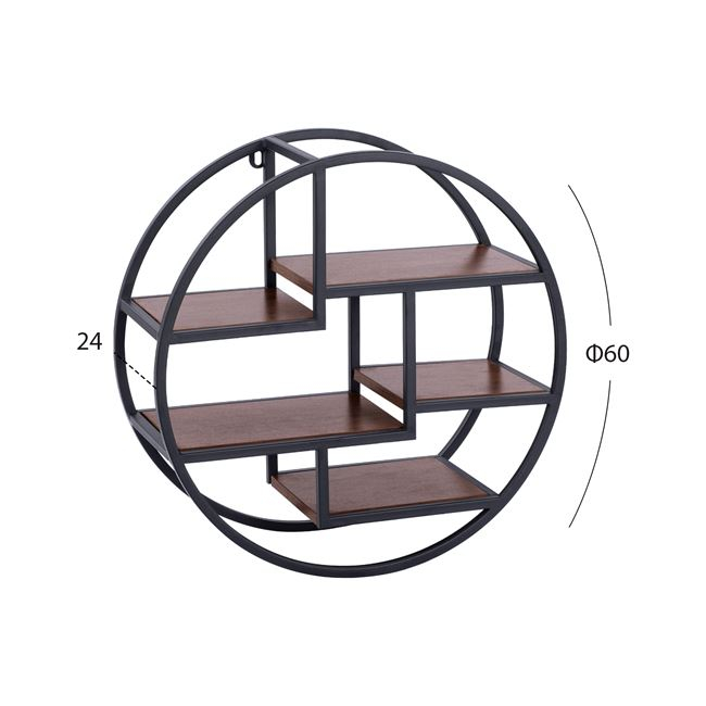 Ραφιέρα τοίχου QUINN από μεταλλικό σκελετό σε μαύρη απόχρωση και βάσεις μελαμίνης σε καρυδί απόχρωση.