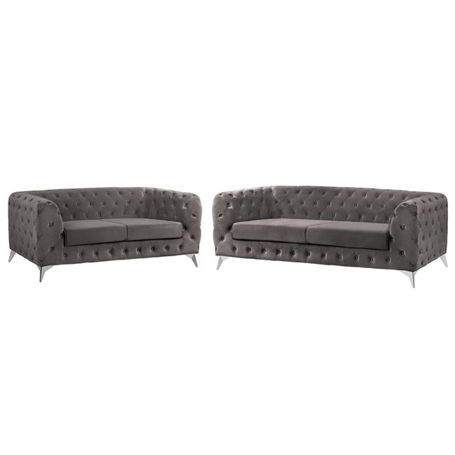 Σετ σαλόνι 2 τεμαχίων ALBERT από βελούδο σε γκρι απόχρωση. Το σετ περιλαμβάνει: