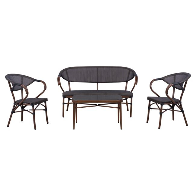 Ολοκληρωμένο σετ σαλόνι 4 τμχ. από σκελετό αλουμινίου bamboo look επενδυμένο με textilene σε γκρι απόχρωση.