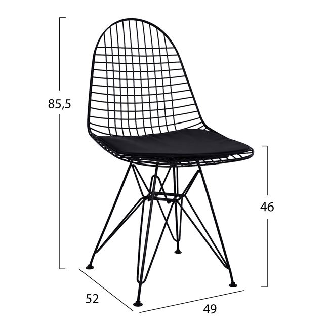 Τέσσερις καρέκλες μεταλλικές σε μαύρη απόχρωση με μαξιλάρι από μαύρο PU.