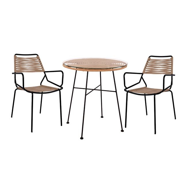 ΣΕΤ 3ΤΜΧ ALLEGRA WICKER ΜΕ ΤΡΑΠΕΖΙ Φ70Χ74Υ ΜΠΕΖ & ΜΑΥΡΟ ΧΡΩΜΑ HM10479