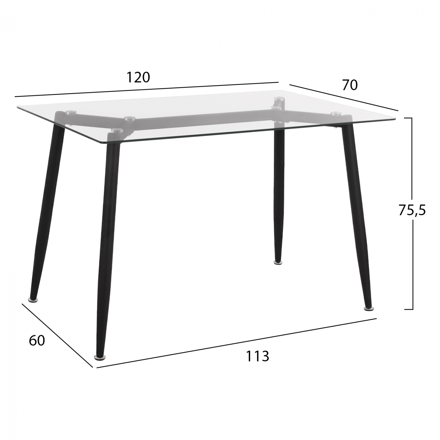 Ελκυστικό και μοντέρνο τραπέζι με μεταλλική βάση μαύρης απόχρωσης και γυάλινη επιφάνεια. Ο συνδυασμός αυτός το κάνει μια εκπληκτική ιδέα για την κουζίνα σας.