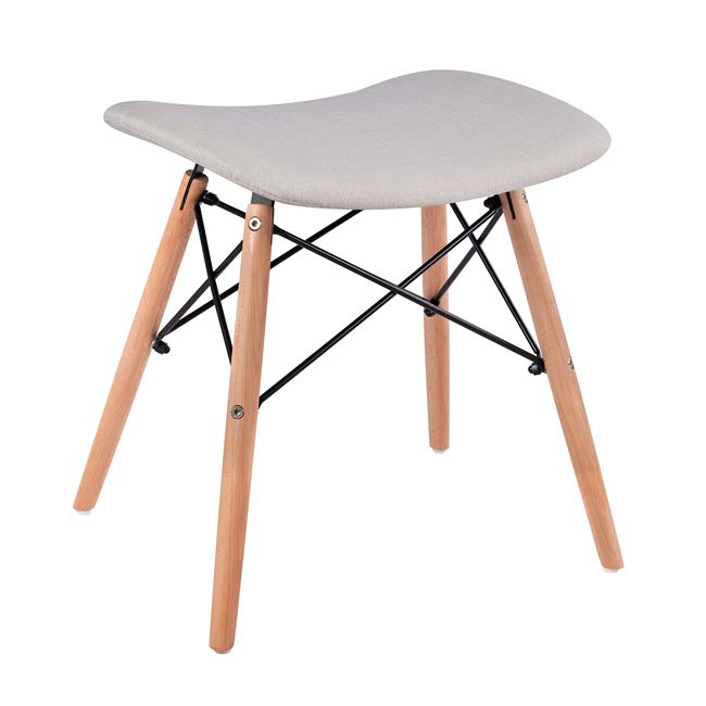 Σκαμπό από ύφασμα σε απόχρωση ανοιχτό γκρι. Τα πόδια του σκαμπό είναι από μασίφ ξύλο.