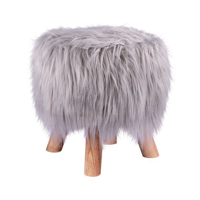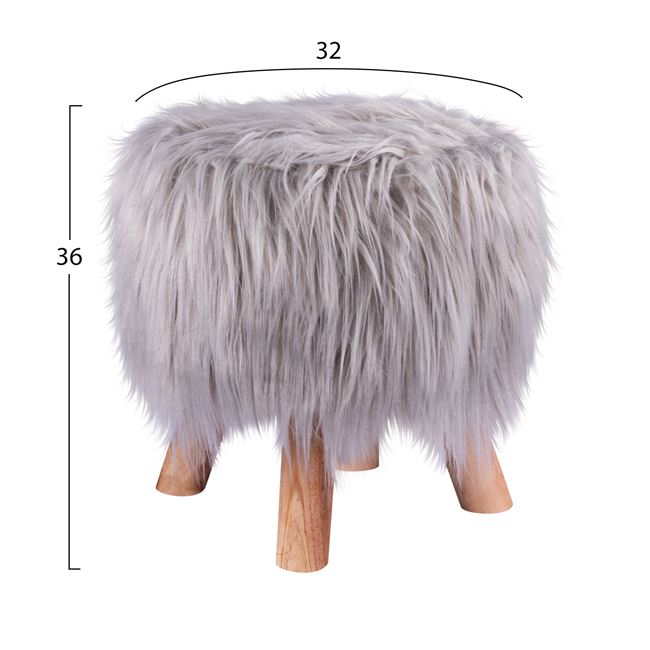 Σκαμπό BECK από γούνα σε γκρι απόχρωση και ξύλινα πόδια σε φυσικό χρώμα.