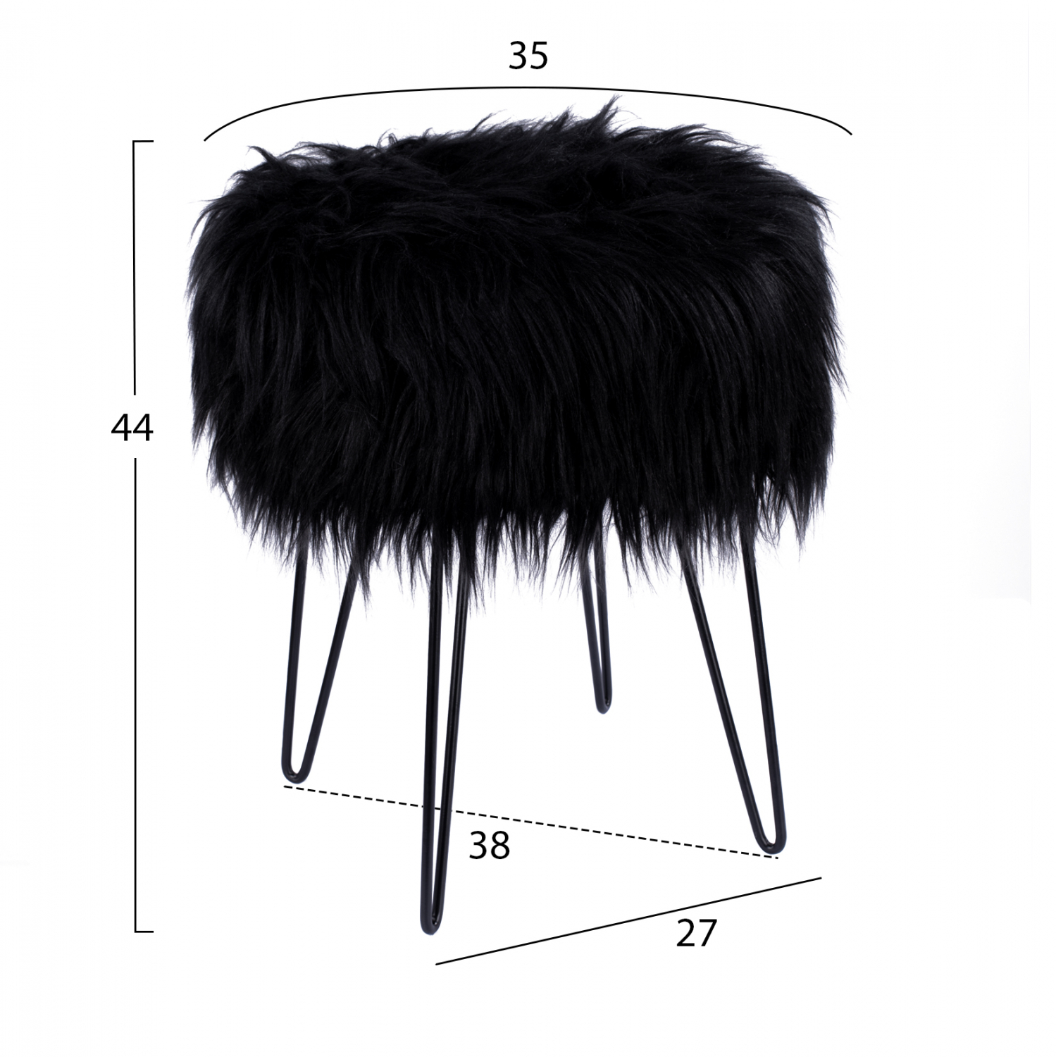 Σκαμπό JAKOB HM8412.01 επενδυμένο με οικολογική γούνα σε μαύρο χρώμα