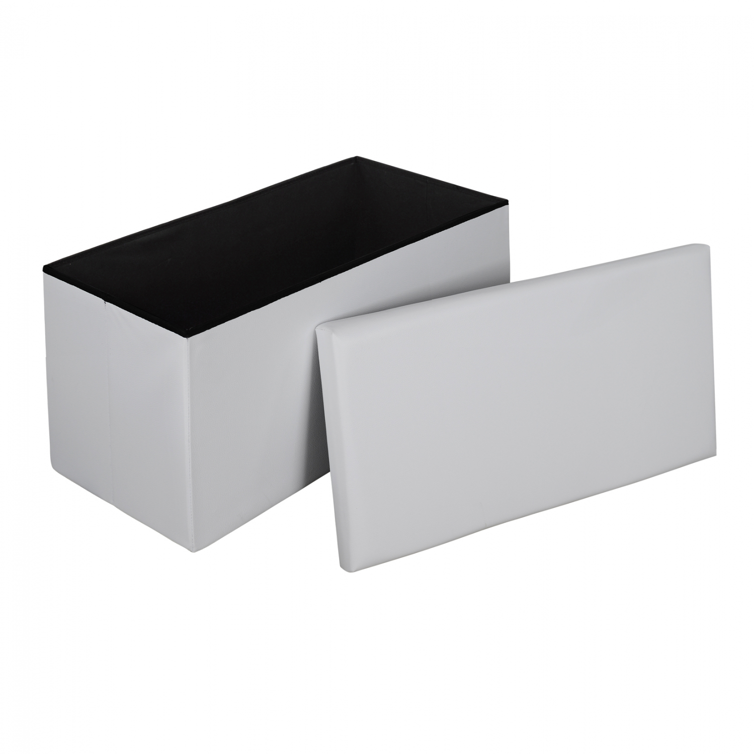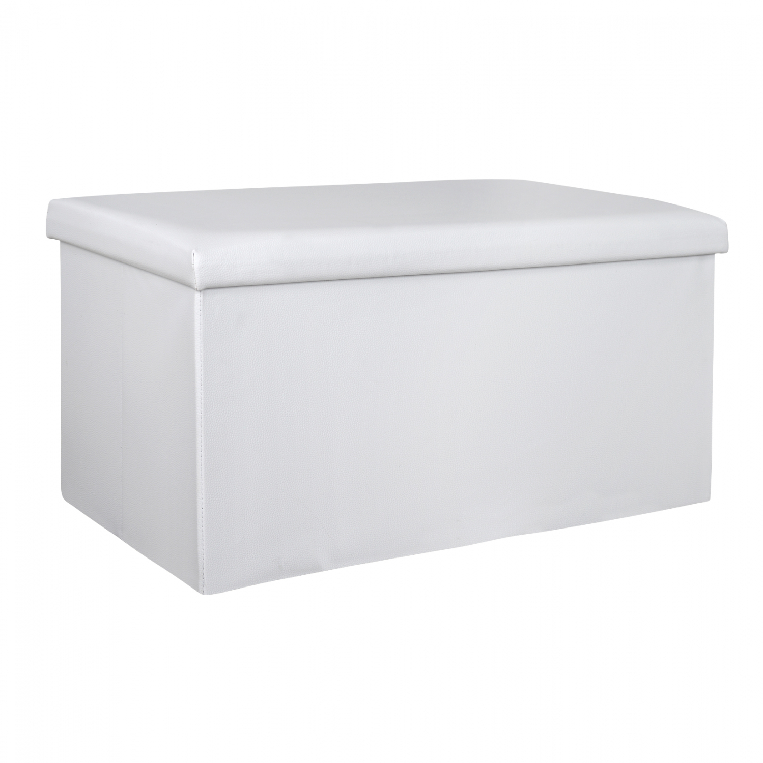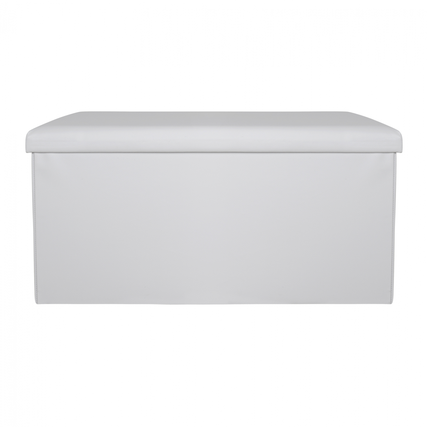 Σκαμπώ πτυσσόμενο με αποθηκευτικό χώρο επενδυμένο με τεχνόδερμα σε λευκό χρώμα.Στολίστε το χώρο και κρύψτε τα πράγματα που δεν θέλετε να φαίνονται.