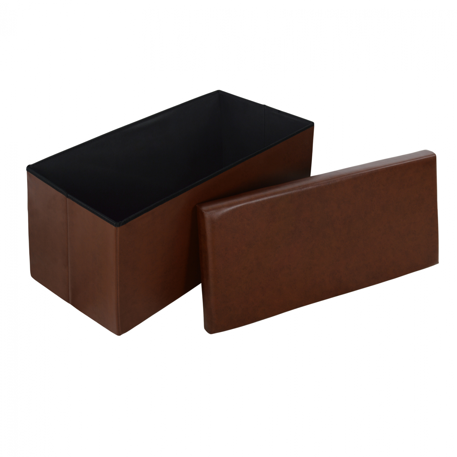 Σκαμπώ πτυσσόμενο με αποθηκευτικό χώρο επενδυμένο με τεχνόδερμα σε σκούρο καφέ χρώμα..
