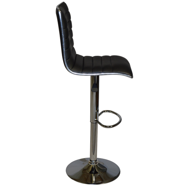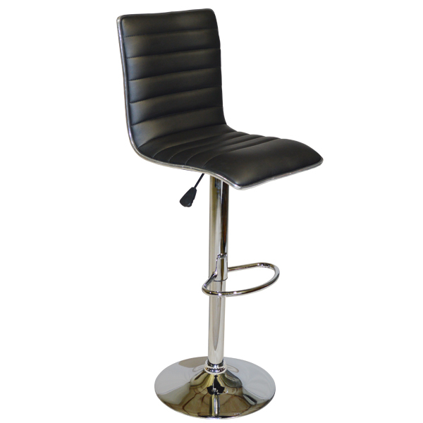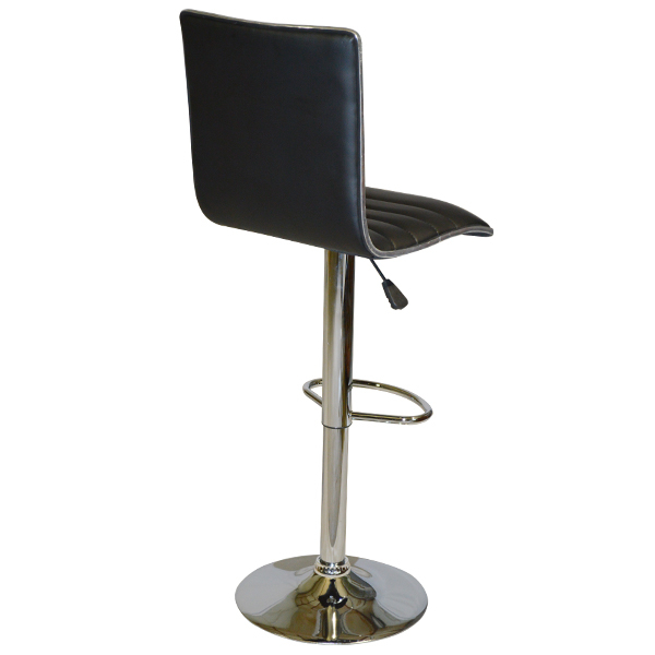 Σκαμπώ κουζίνας-μπαρ inox με αμορτισέρ & επένδυση μαύρης δερματίνης.