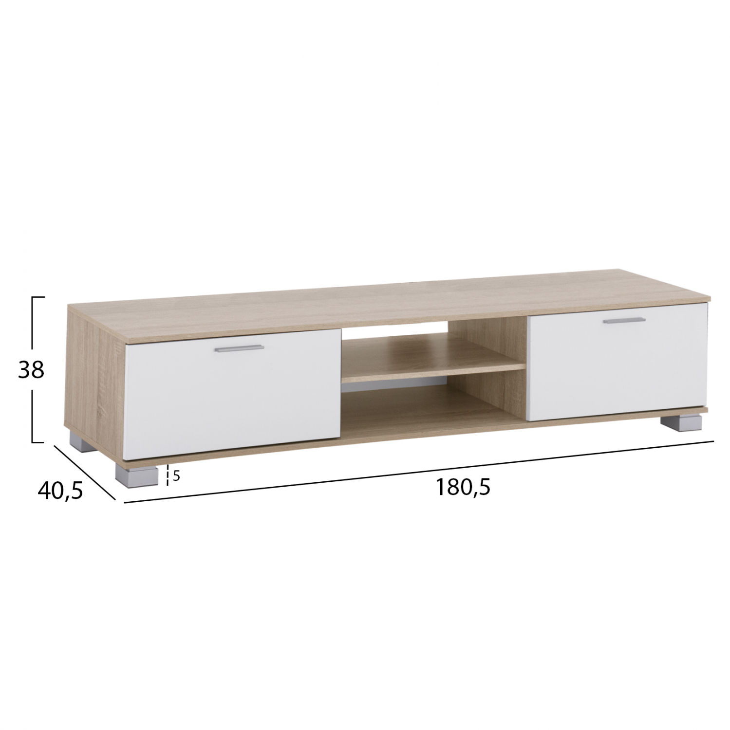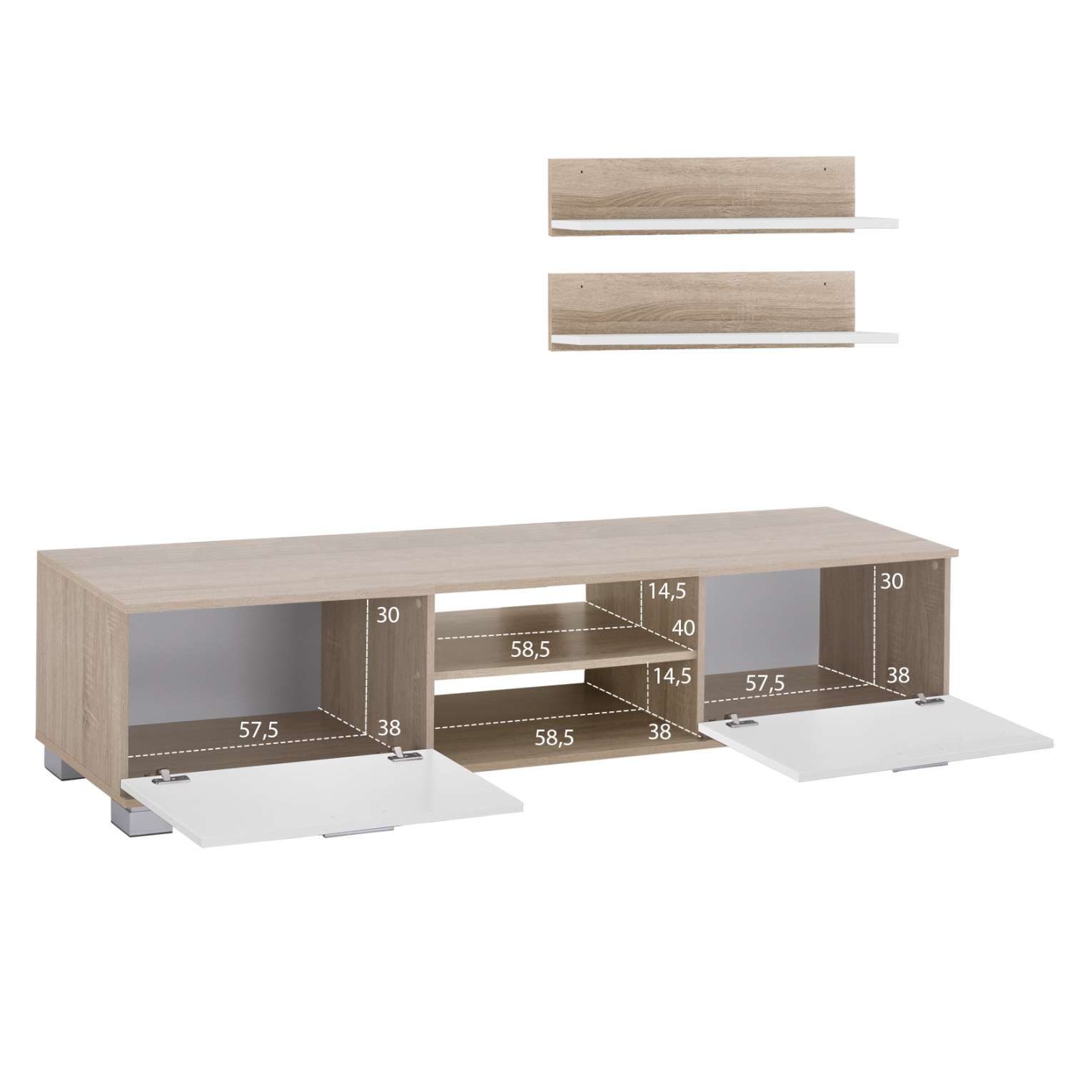 Σύνθεση τηλεόρασης κατασκευασμένη από μελαμίνη σε sonama και λευκό χρώμα με 2 ντουλάπια και 2 ράφια ως αποθηκευτικός χώρος.