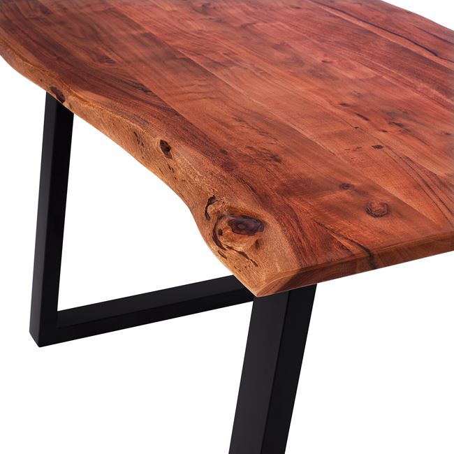 Το τραπέζι HM8163 είναι κατασκευασμένο από μασίφ ξύλο ακακίας σε φυσική απόχρωση και μέταλλο σε μαύρο χρώμα.