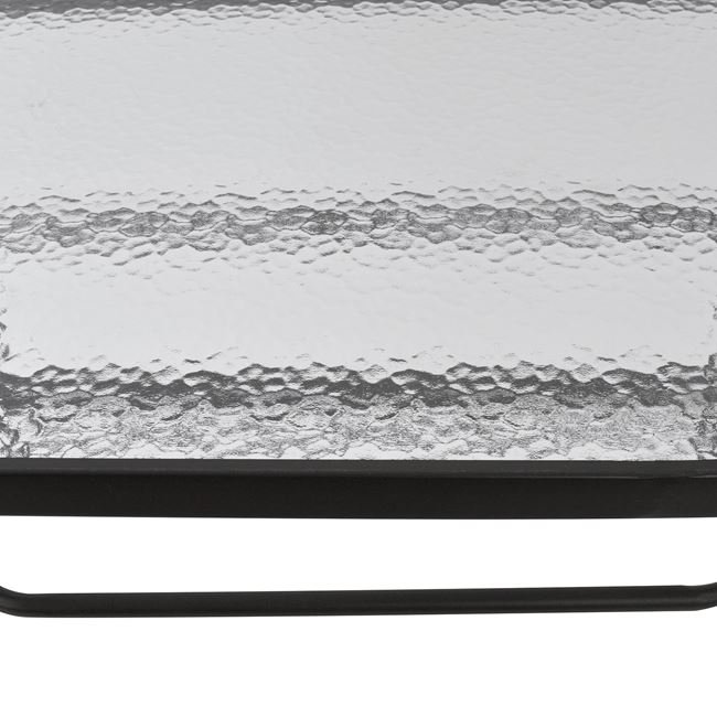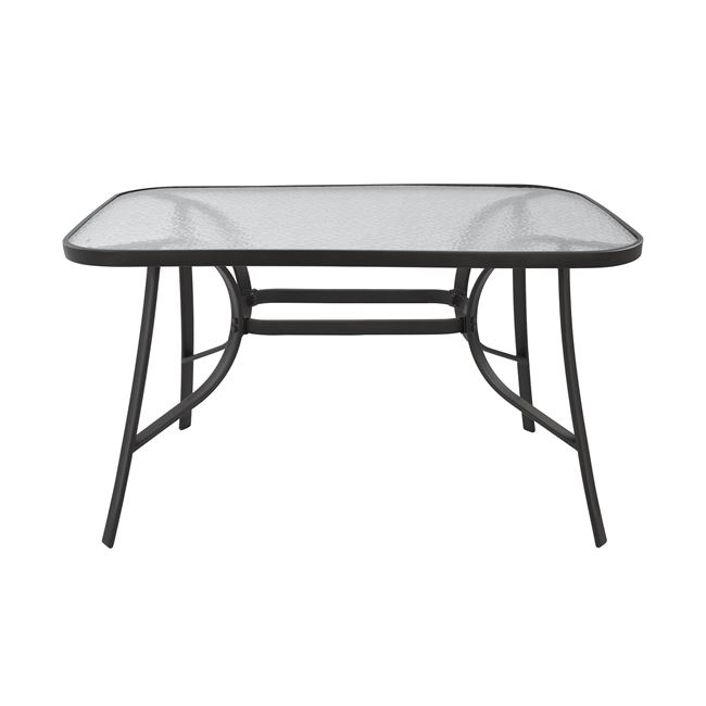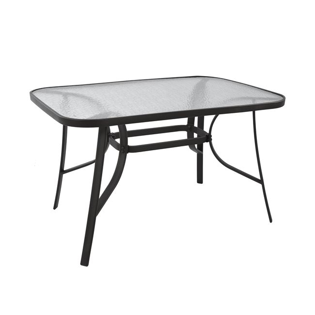 Τραπέζι εξωτερικού χώρου μεταλλικό με γυαλί ασφαλείας στην επιφάνεια του.