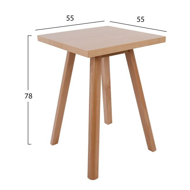ΤΡΑΠΕΖΙ VEGAS ΦΥΣΙΚΟ 55Χ55Χ78Υ ΕΚ ΜΕ ΞΥΛΙΝΑ ΠΟΔΙΑ ΟΞΙΑ HM10428.03